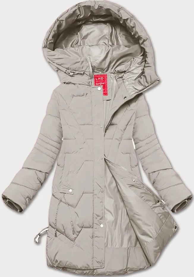 Světle béžová dámská bunda pro přechodné období s kapucí LHD (LHD-24585)