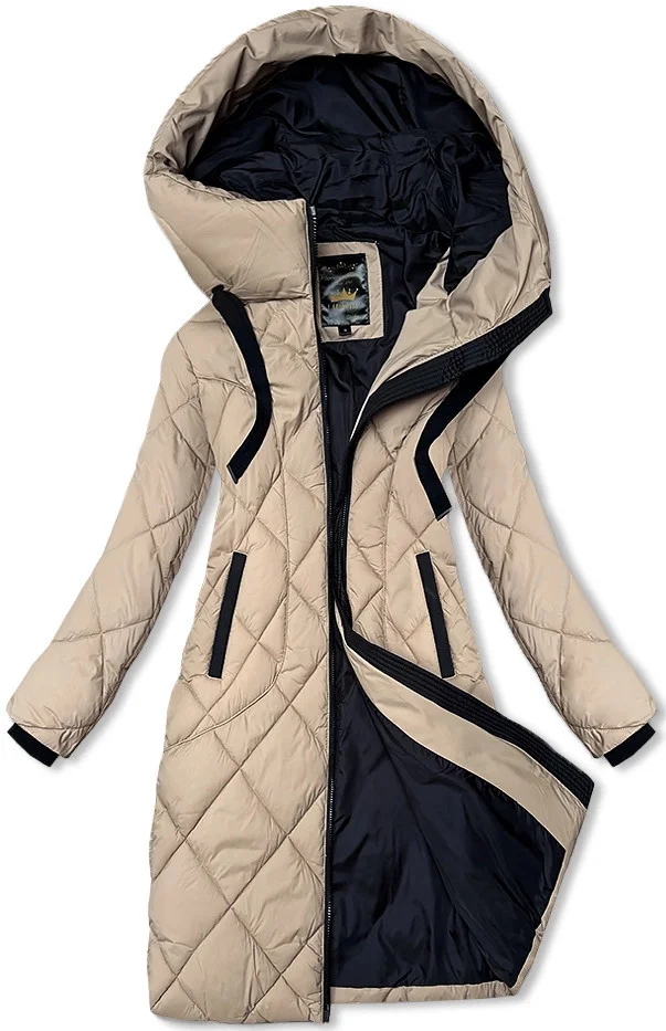 Béžová dámská bunda pro přechodné období s kapucí Libland (LD-7735)