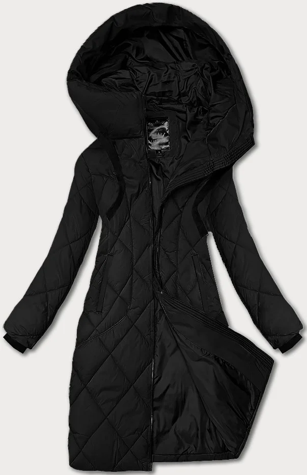 Černá dámská bunda pro přechodné období s kapucí Libland (LD-7735)