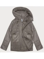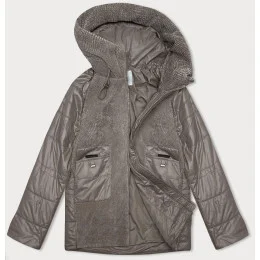 Dámská bunda v barvě coffee z různých spojených materiálů Vaston pro přechodné období (F-23301#)