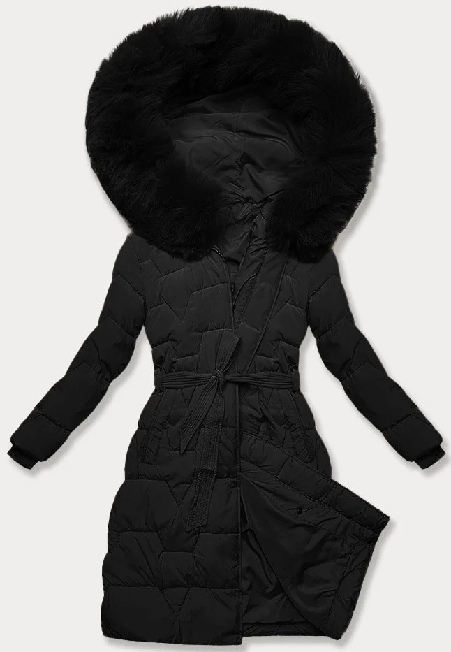 Černá dámská bunda pro přechodné období s páskem J Style (16M9176-392)