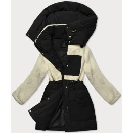 Černo-ecru bunda pro přechodné období z různých spojených materiálů (WD2351)