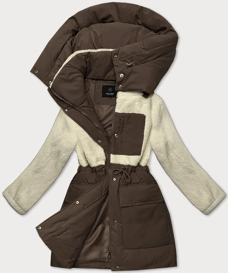 Čokoládovo-ecru bunda pro přechodné období z různých spojených materiálů (WD2351)