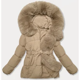 Béžová dámská bunda pro přechodné období s páskem J Style (16M9183-62)