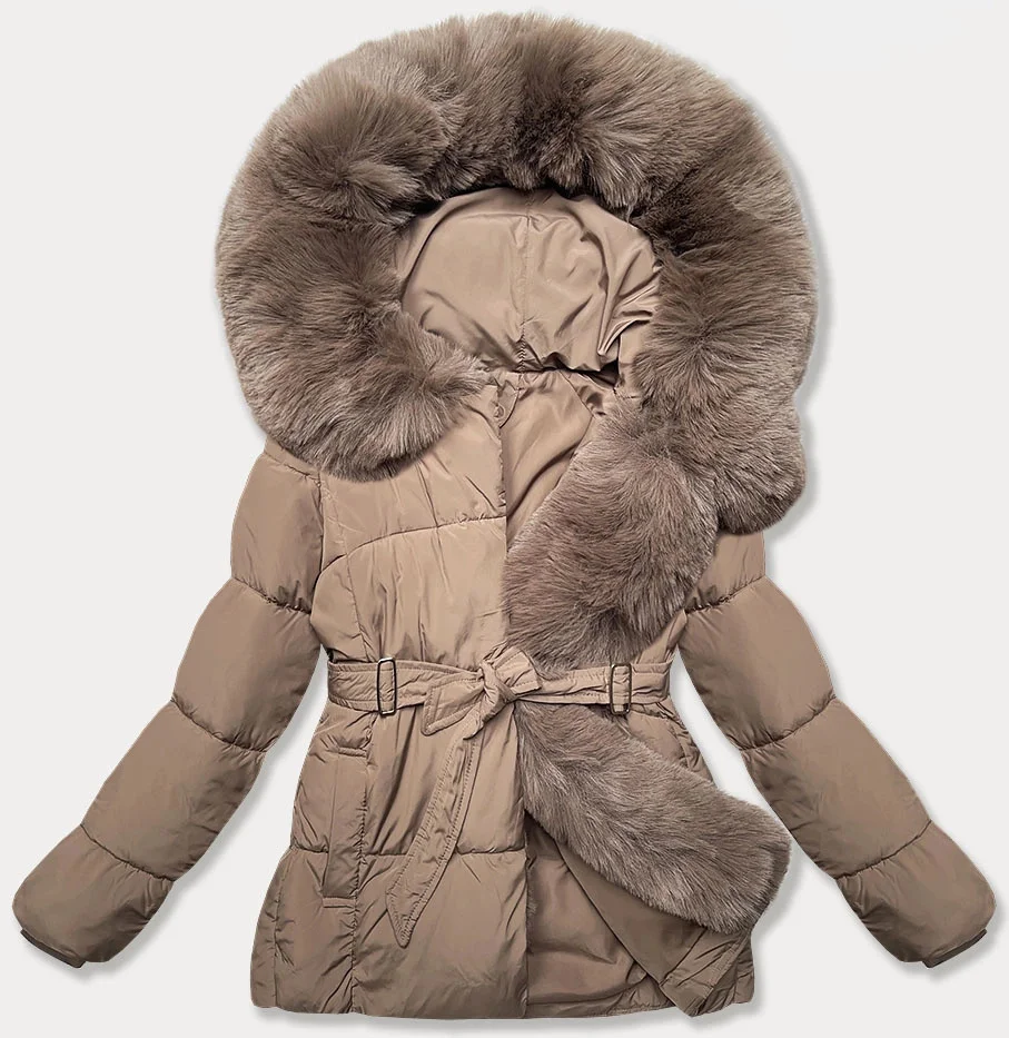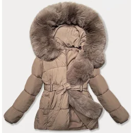 Tmavě béžová dámská bunda pro přechodné období s páskem J Style (16M9183-84)