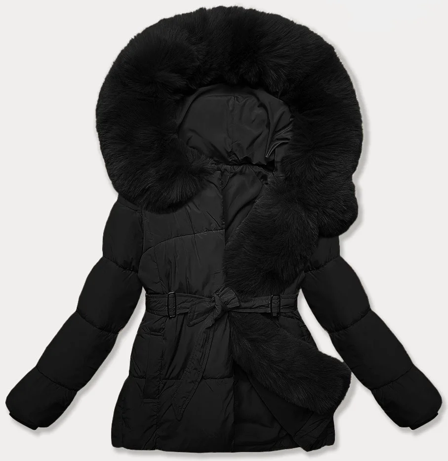 Černá dámská bunda pro přechodné období s páskem J Style (16M9183-392)