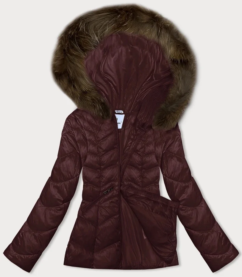 Dámská prošívaná bunda ve vínové bordó barvě pro přechodné období s kapucií Glakate (LU-2202)