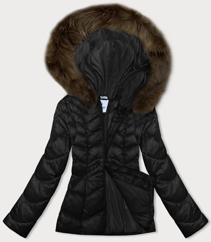 Černá dámská prošívaná bunda pro přechodné období s kapucí Glakate (LU-2202)