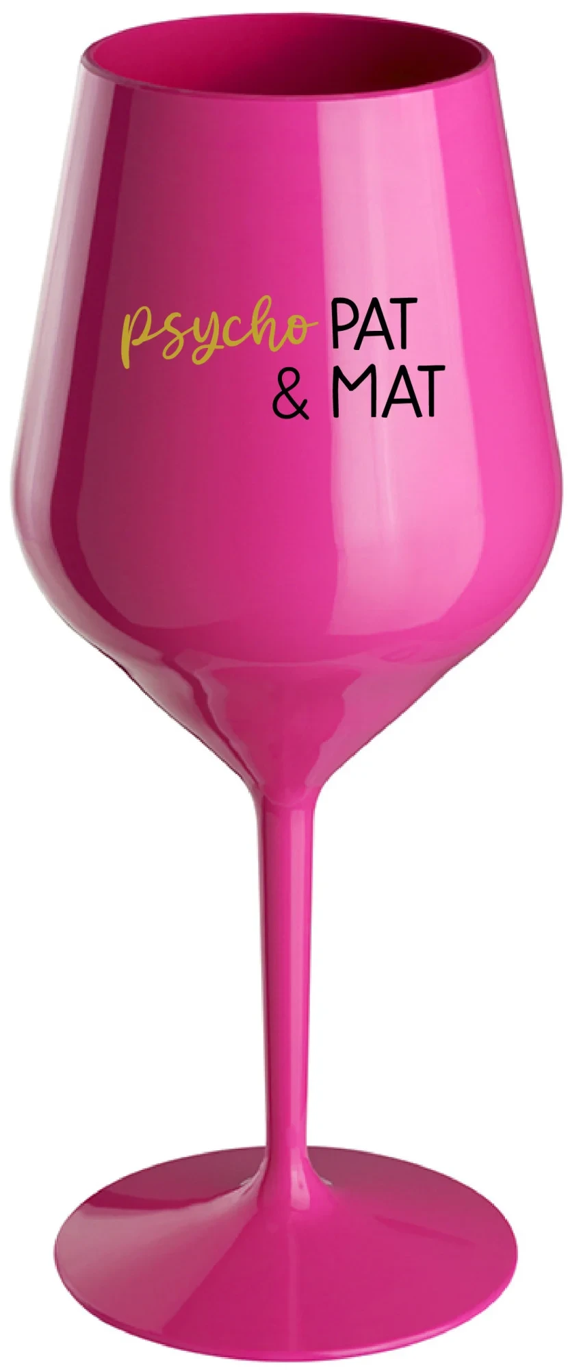 PSYCHO PAT&MAT - růžová nerozbitná sklenice na víno 470 ml