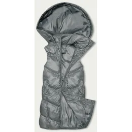 Dlouhá šedá péřová vesta s kapucí (5M3183-105)