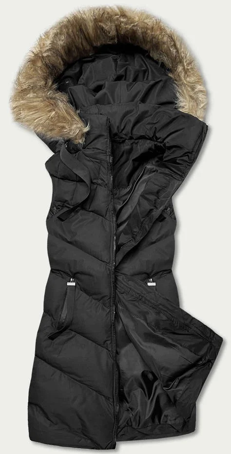 Černá péřová dámská vesta s kožešinou (5M787-392)