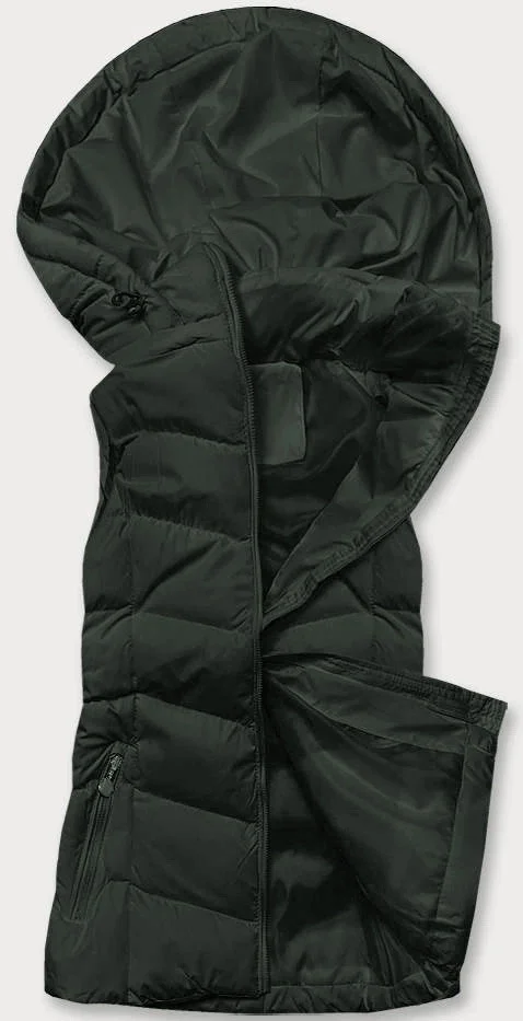 Péřová dámská vesta v army barvě s kapucí (5M720-136)