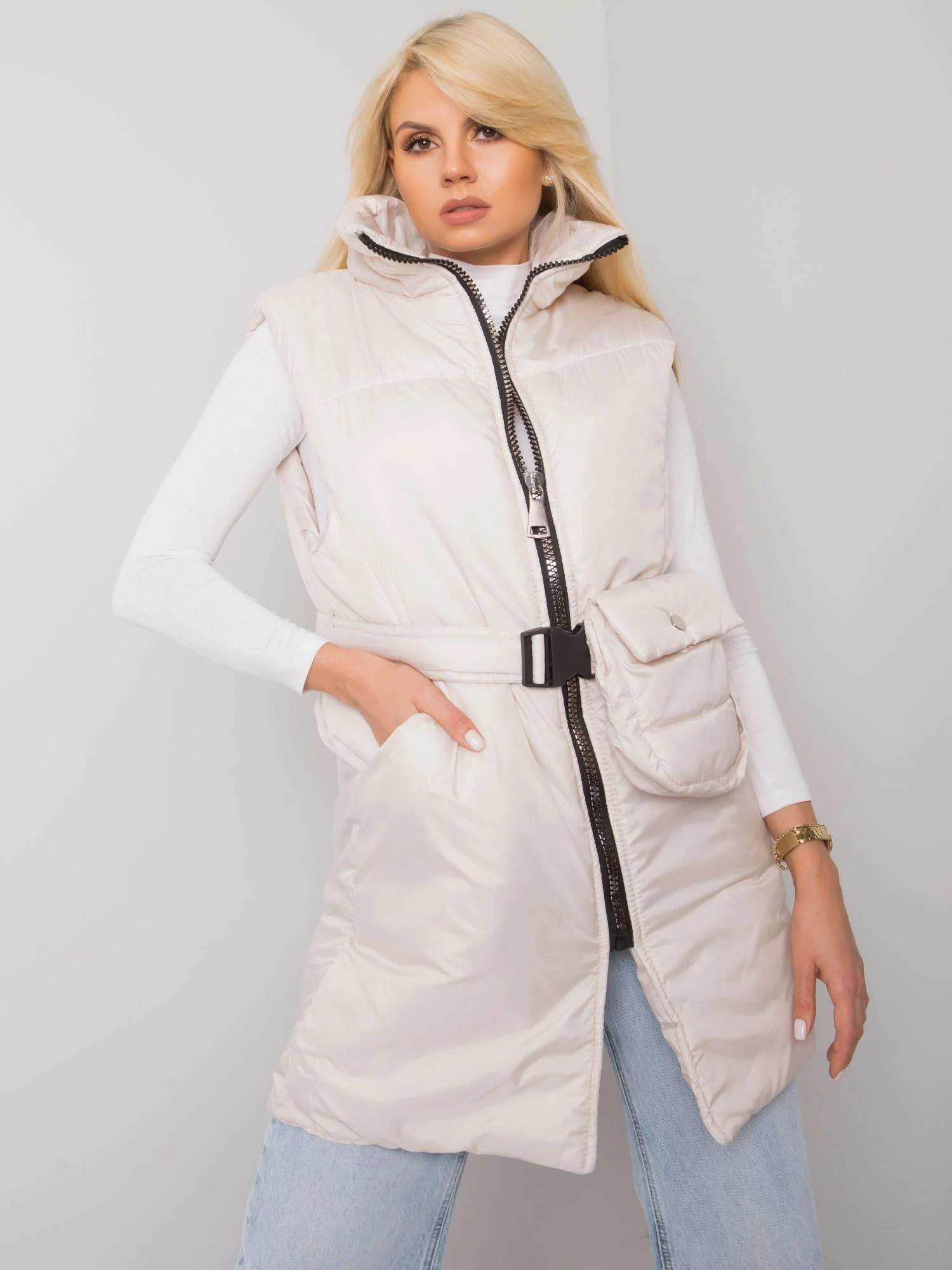 Péřová vesta v ecru barvě se stojáčkem Factory Price (612)