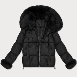 Černá dámská péřová bunda s kožešinovým límcem S'West (B8257-1)
