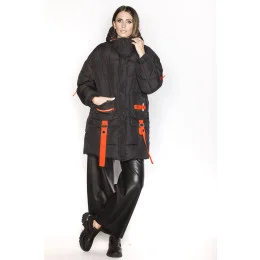 Černá péřová dámská bunda s ozdobnými páskami (AG2-J85)