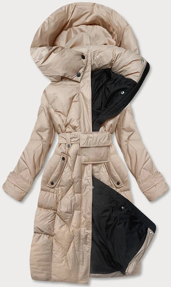 Béžová péřová bunda se stojáčkem a kapucí (ag2-j82)