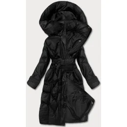 Černá péřová bunda se stojáčkem a kapucí (ag2-j82)