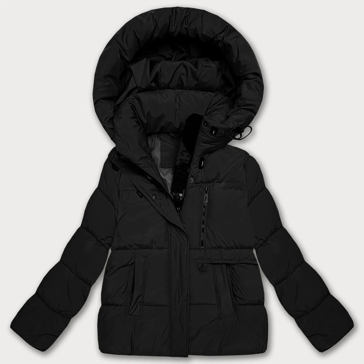 Černá volná péřová dámská bunda s kapucí S'West (B8529-1)