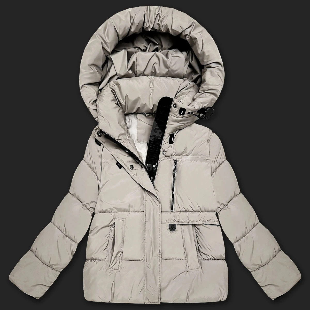 Světle béžová volná péřová dámská bunda s kapucí S'West (B8529-46)