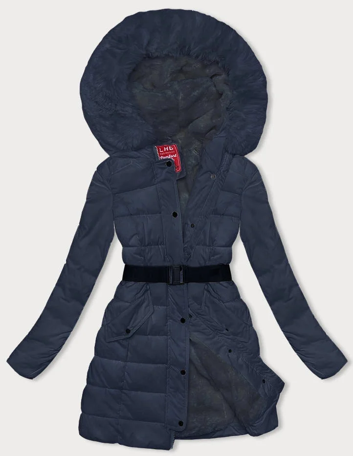 Tmavě modrá péřová dámská zimní bunda (2M-007)
