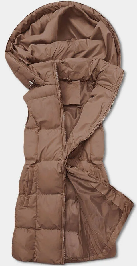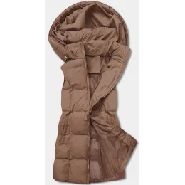 Tmavě béžová péřová dámská vesta s kapucí (5M721-84)