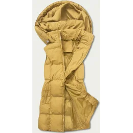 Tmavě žlutá péřová dámská vesta s kapucí (5M721-254)