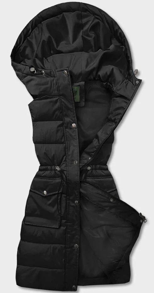 Černá dámská péřová vesta s kapucí (CAN-860)