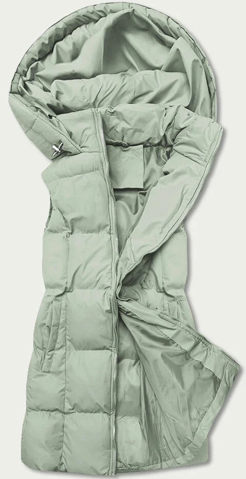 Péřová dámská vesta v pistáciové barvě s kapucí (5M721-236)