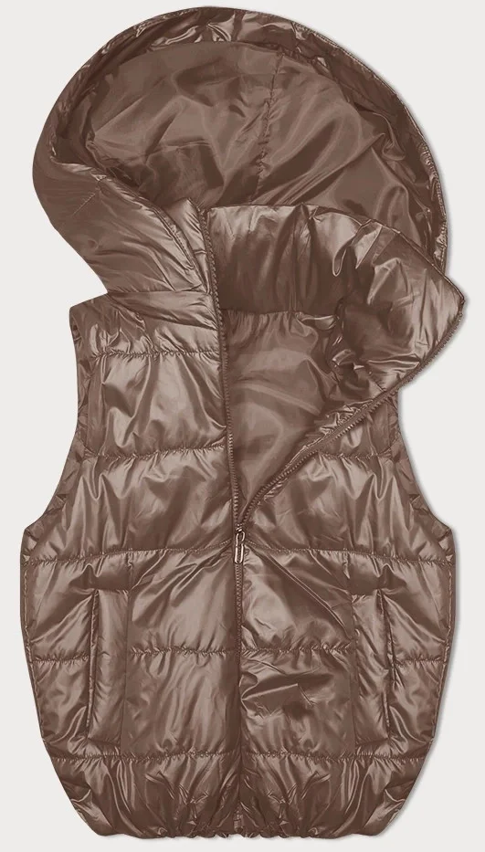 Tmavě béžová péřová vesta s odepínací kapucí (B8247-101)