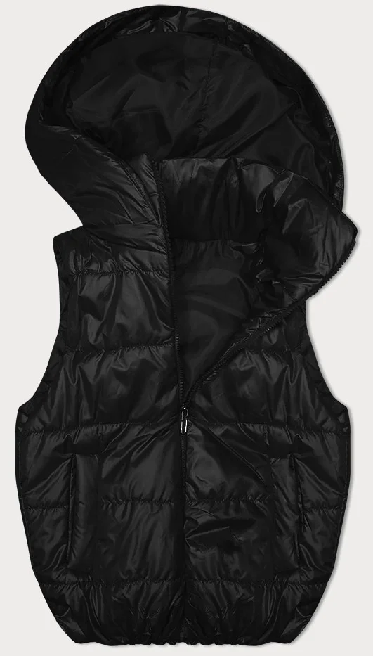 Černá péřová vesta s odepínací kapucí (B8247-1)