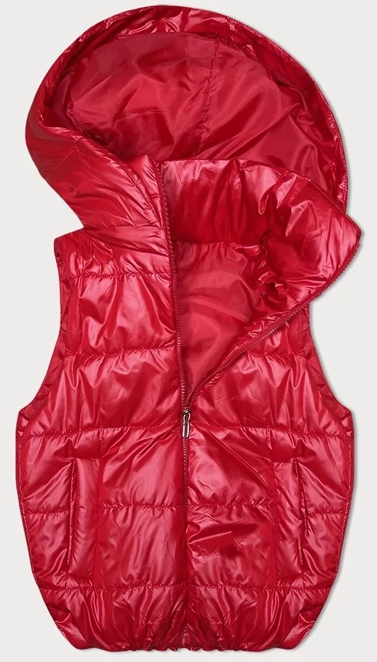 Červená péřová vesta s odepínací kapucí (B8247-4)