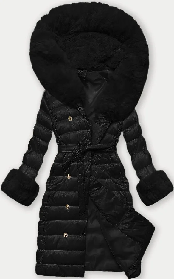 Černý péřový dámský kabát se zapínáním na knoflíky (5M3160/1-392)