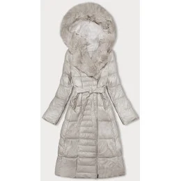 Péřový kabát z eko kůže v barvě ecru s kožešinou Ann Gissy (AG9-9003)