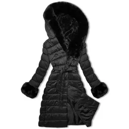 Černý péřový zimní kabát s kožešinovou kapucí J Style (11Z8095)