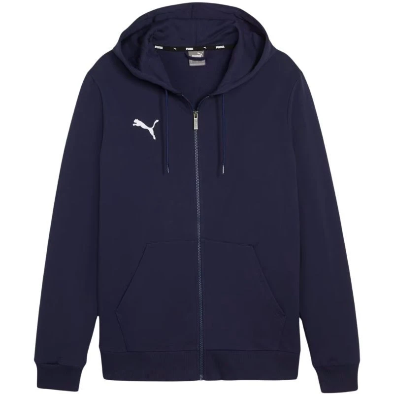 Puma TeamGoal Casuals navy blue 658596 06. Dětská mikina Puma pro každodenní nošení. regular fit. měkký materiál. prostorná nenastavitelná kapuce. regular fit s žebrovanými manžetami. malé logo. fotbalová kolekce Team Goal. zip po celé délce. otevřené boční kapsy. hlavní materiál: 100% bavlna.