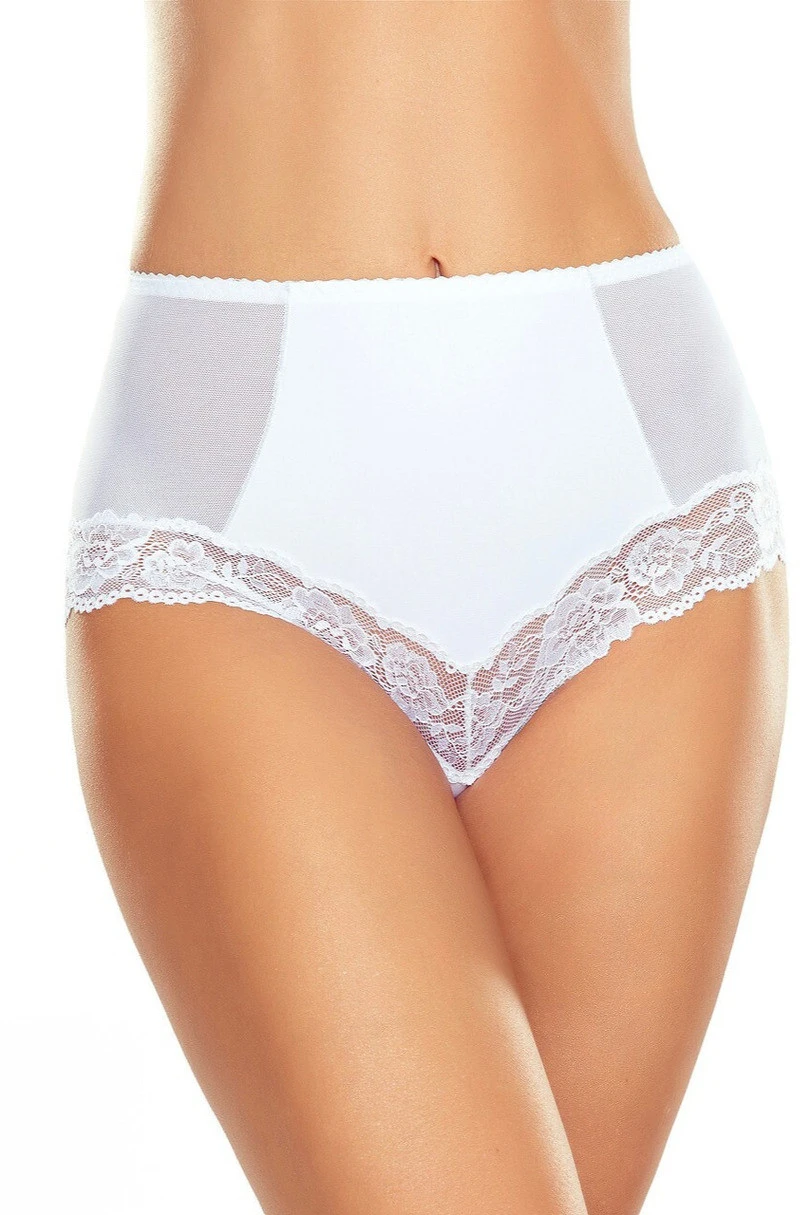 Elegantní tvarující kalhotky s vysokým pasem jsou dokonalou kombinací ženského stylu a funkčnosti. Jsou vyrobeny z měkkého, elastického mikrovlákna, dokonale se přizpůsobí siluetě a poskytují pocit pohodlí a hladkosti po celý den. Přední část je vyztužena jemnou síťovinou, která účinně tvaruje břicho, zeštíhluje pas a zvýrazňuje ženské křivky. Spodní část zdobená jemnou květinovou krajkou dodává prádlu mimořádně smyslný a elegantní vzhled. Kalhotky jsou ideální pro každodenní stylizaci a elegantní outfity, zaručují krásný vzhled a pohodlné nošení.