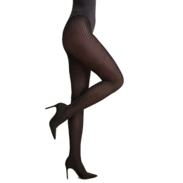 Punčocháče zimní 127 Celest black plus GABRIELLA - černá barva - z elastických vláken s přídavkem polyamidového hedvábí - se vzorem - bez viditelné sedací části - bavlněný klín - ploché švy - 80 DEN