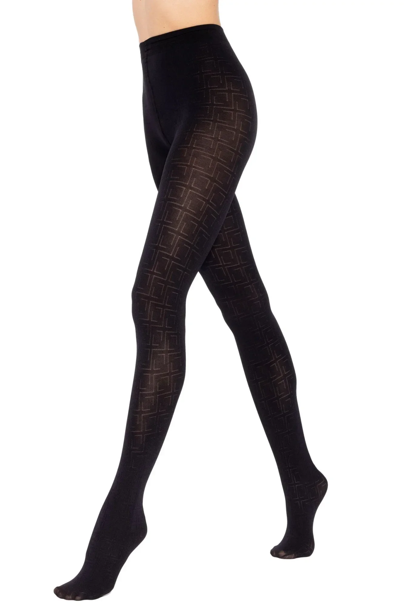 Punčocháče zimní 151 Loretta GATTA - černá barva - z elastanové příze - vzorované - mat - 50 DEN