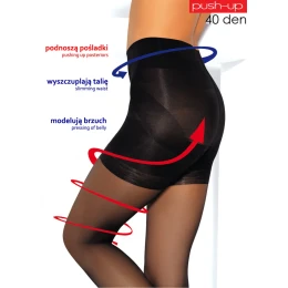 Klasické, stahující punčochové kalhoty 40DEN. Díky struktuře Push-up tvarují postavu a opticky pozvedají zadeček a zeštíhlují břicho. 82% polyamid, 18% elastan.