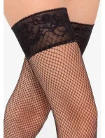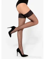 Samodržící síťované punčochy Gatta Margherita 05 v elegantní černé barvě se vzorem kabaretní síťky s většími oky, zdobená krajkou se silikonovým proužkem, díky kterému punčochy perfektně drží na svém místě.