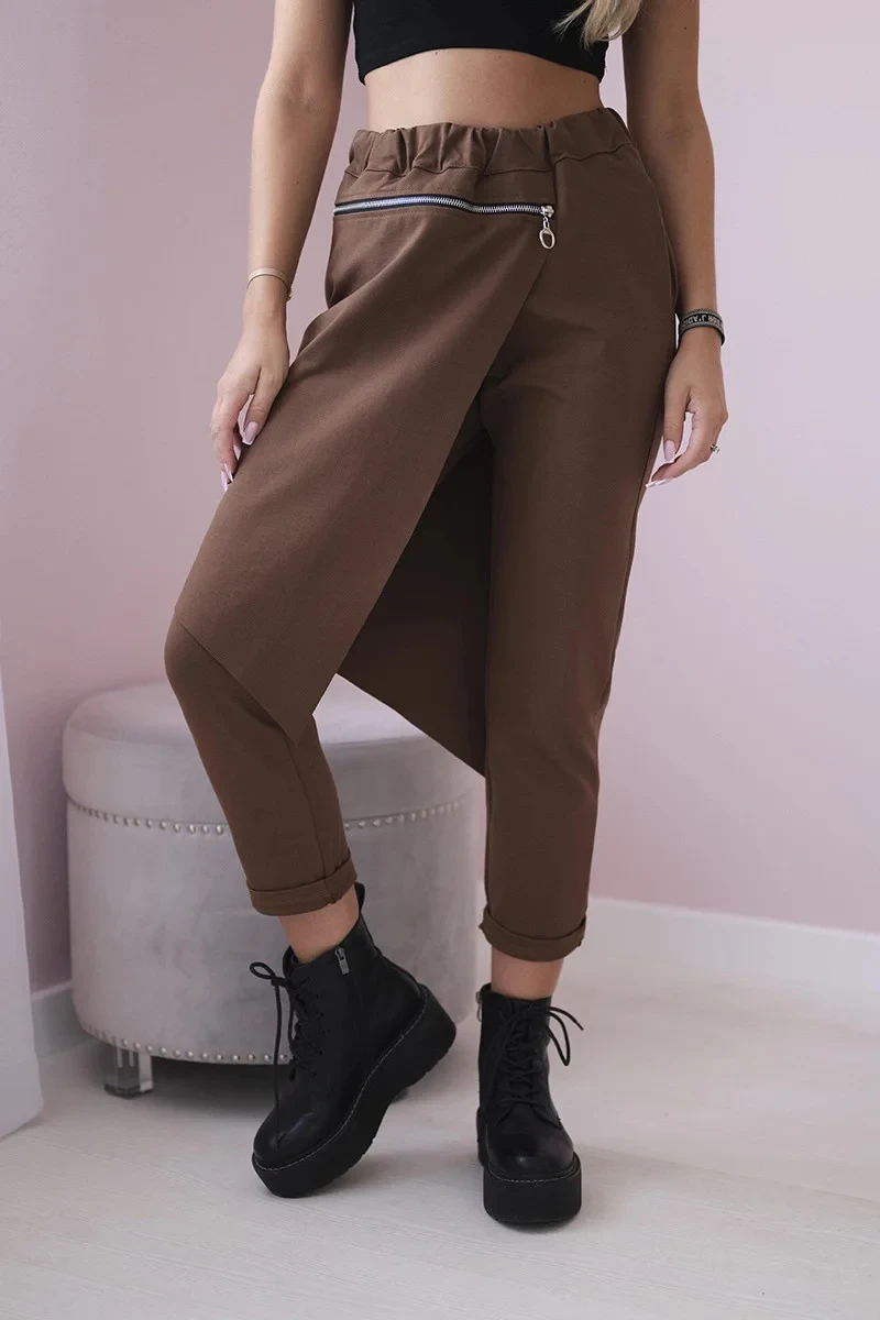 Punto Milano Zimní kalhoty s ozdobným zipem hnědý