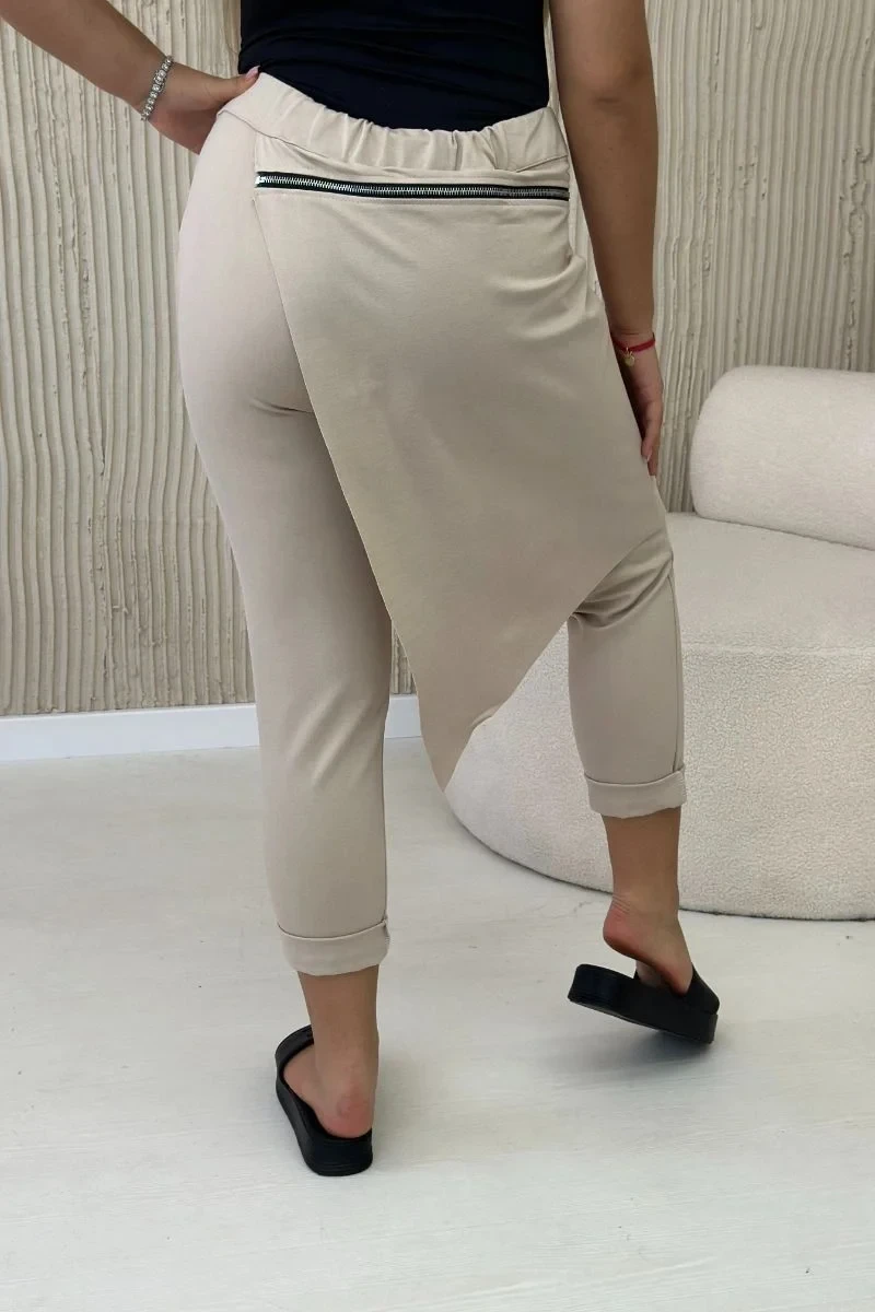 Punto Milano Zimní kalhoty s ozdobným zipem tmavě béžová