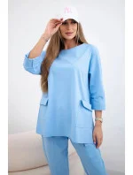 Prezentujemy Państwu komplet 2-częściowy. Komplety składa się z bluzy oraz spodni. Bluza oversize, gładka bez nadruków. Spodnie z kieszeniami i wiązaniem w pasie. Komplet wykonany jest z wysokiej jakości materiału. Rozmiar jest uniwersalny i będzie odpowiedni dla Pań w rozmiarze S lub M.