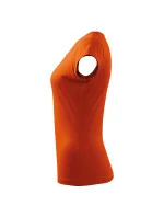 lehce vypasovaný střih s bočními švy průkrčník lemován vrchovým materiálem zpevnění ramenních švů páskou rukávy kratší délky silikonová úprava