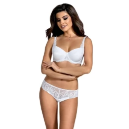 Elegantní push-up podprsenka. Horní část košíčků je vyrobena z hladkého úpletu, zdobeného krajkou. Spodní část košíčku je vyrobena ze vzorované látky, odnímatelné zvětšující vložky. Košíčky a můstek jsou pokryté krásnou krajkou, ozdobné mašličky, nastavitelná, neodnímatelná, prodloužená, krajková ramínka. Zapínání vzadu na háčky, zadní část z elastické síťoviny.