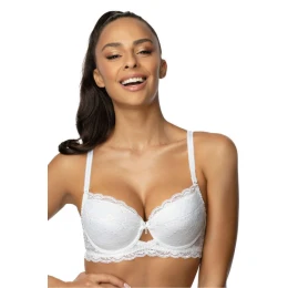 Svůdné spodní prádlo Kate ve sněhově bílé barvě. Věnováno milovnicím klasického a zároveň sexy spodního prádla. Push-up podprsenka je celá vyrobená z krajky. Spodní část prádla je mírně prodloužená, což vytváří efekt koketní podprsenky. Charisma prádlu dodává koketní očko mezi košíčky a bižuterní akcent. Model má vyjímatelné vsadky a odnímatelná, nastavitelná ramínka. Dvojité zapínání na háčky a očka s třístupňovou regulací.