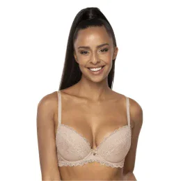 Estelle, jemný a decentní model s push-up košíčky a sníženým středem. Podprsenka je k dispozici ve třech barevných provedeních: bílá, černá a červená. Celkově vyrobená z úchvatné krajky. Uprostřed malá mašlička s bižuterním přívěskem. Ramínka se nesundavají, jsou nastavitelná. Vycpávky push-up jsou vyjímatelné. Trojháček s trojúrovňovým nastavením.