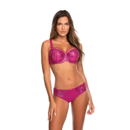 Podprsenka push-up je okouzlující a exkluzivní nabídka. Elegantní vyšívaný vzor okouzlujícím způsobem září ve světle odstíny růžové a fialové. Tento jedinečný model zdůrazní krásu vašeho poprsí díky vyjímatelným vložkám. Perfektní efekt dosáhnete kombinací podprsenky s kalhotkami. Šťávu přidají ozdoby ve formě pásků na výstřihu a u ramínek. Model má nesnímatelná, nastavitelná ramínka a zapínání na háček s třístupňovou regulací.