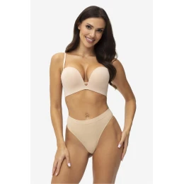 Podprsenka push-up je model vytvořený s cílem zdůraznit a opticky zvětšit poprsí. Zesílené košíčky s efektem 2 x push-up zdvihují a tvarují prsa, dodávají jim plnější a lákavější tvar. Tepelně lisované košíčky s pevnou výplní zajistí trvalý efekt zvednutí a ideální přizpůsobení siluetě. Model je vybaven bočními kosticemi, které stabilizují konstrukci a podporují poprsí. Podprsenka se zapínáním na zádech zaručuje pohodlí při nošení a nastavitelné ramínka umožňují ideální přizpůsobení délky. Díky možnosti odpojení se model hodí i pod stylizace vyžadující různá řešení. Hladký povrch zabraňuje odznakování pod oblečením, díky čemuž je ideální pro přiléhavé kreace. Je to ideální volba pro ženy s malým a středním poprsím, které touží po efektivně zdůrazněném dekoltu.