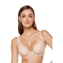 Koronkový push-up podprsenka Eclipse je ideální volbou pro hluboké výstřihy. Košíčky z tenké pěnové podprsenkové houby potažené zvenčí originální korálkou. Košíčky podprsenky mají uvnitř kapsy, ve kterých jsou umístěny push-up vložky. Vnitřní část košíčků je potažena bavlnou s certifikátem OEKO-TEX, díky čemuž jsou šetrné k pokožce. Zadní část podprsenky je vyrobena z korálky. Svislé boční kostice stabilizují obvod podprsenky. Podprsenka byla navržena a ušita v Polsku.